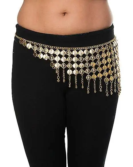 Strike gold when you wear this fortune teller coin belt! Shimmy and shake your way through mysterious adventures of the mind when you wear this metallic gold disc skirt.