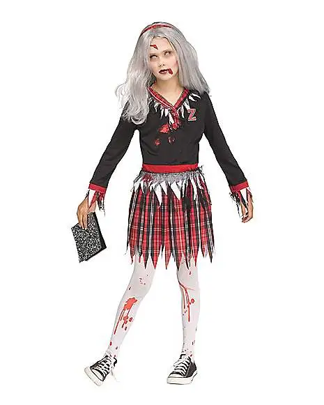 You’ll look ready for your next class at zombie high when you get yourself this Kids Zombie Nerd Costume. Featuring a battered dress, bloody tights, and a headband, you’re sure to get an A in being undead while wearing this zombie nerd costume.