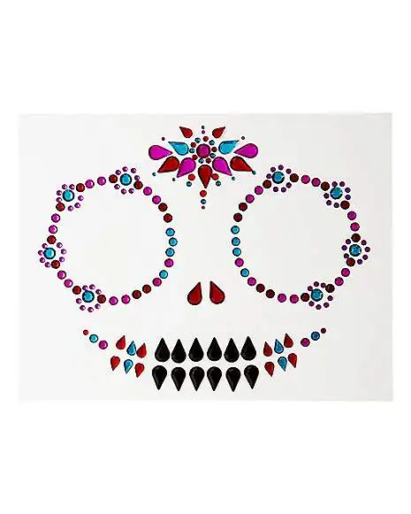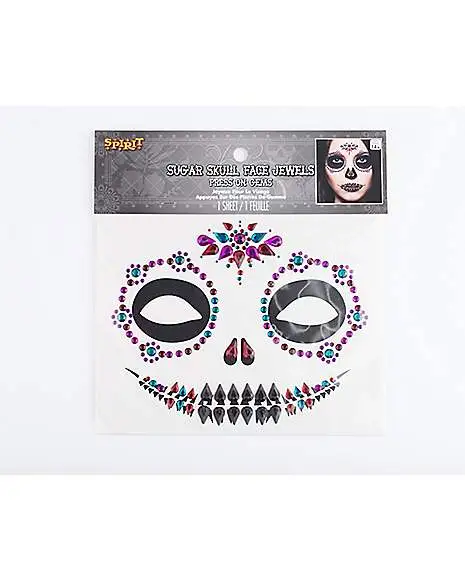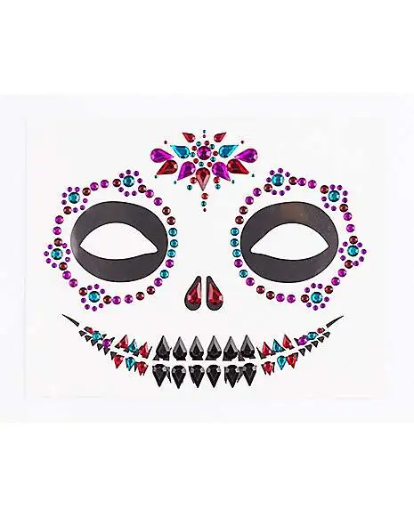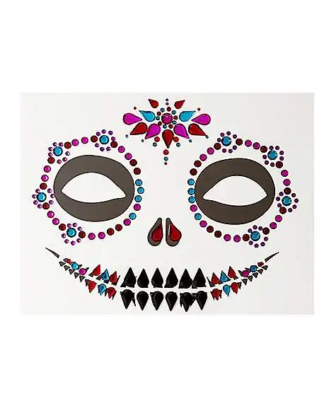Make your Day of the Dead costume stand out when you adorn yourself with these sugar skull face decals. These easy to use decals add a colorful spin to this bold look and will make you totally eye-catching.