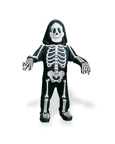 Rattle everyone’s bones when you dress your little one in this Totally Skelebones toddler costume. The hooded jumpsuit if this skeleton costume features skeleton bone print and comes complete with mask, gloves and boot tops.